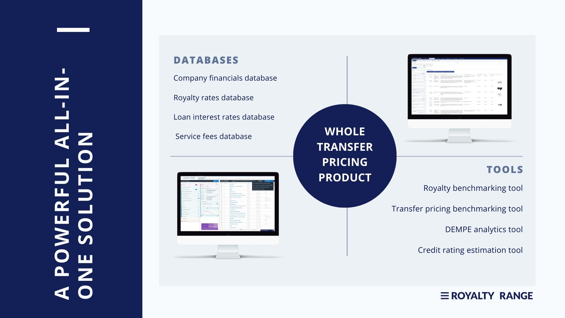 - Transfer pricing tools: RoyaltyRange offers a variety of transfer pricing tools to help businesses with their transfer pricing compliance and planning needs. These tools include a transfer pricing benchmarking tool, a profit split calculator, and a transfer pricing documentation generator.